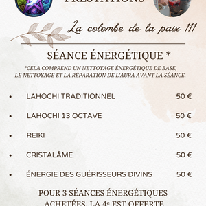 Les séances énergétiques ne remplacent en aucun cas un traitement médical et ne dispensent pas d’un avis médical.